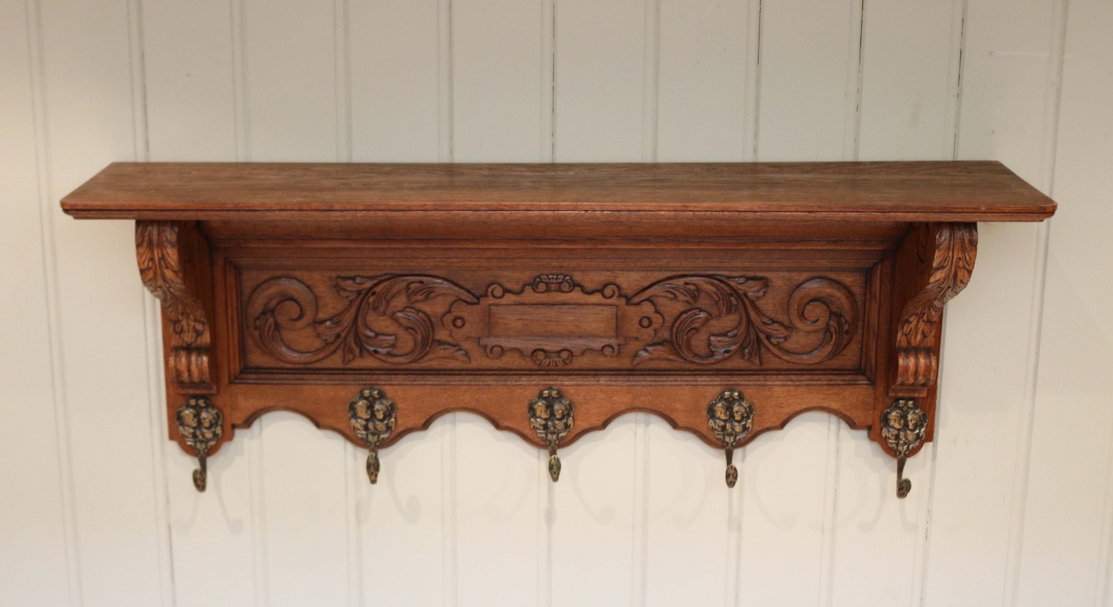 French Carved Solid Oak Wall Shelf c.1920 (1 of 1)