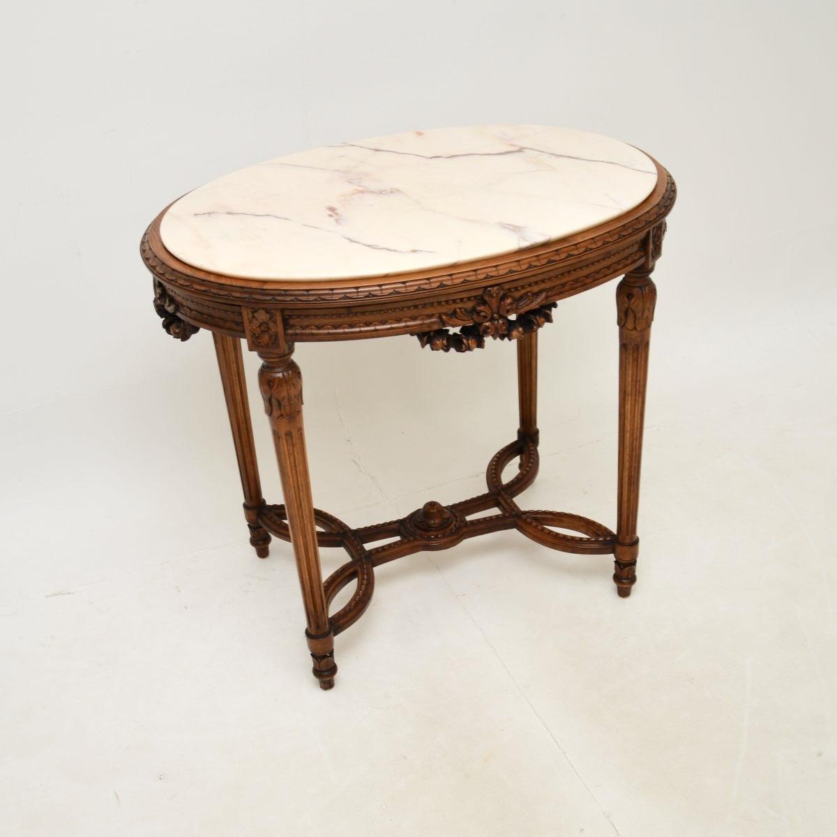 French Carved Walnut Marble Top Occasional Table (1 of 6)
