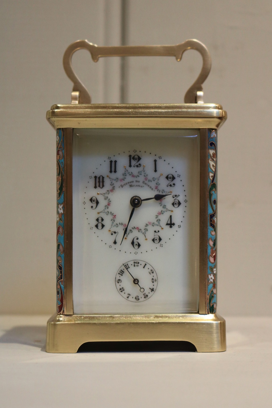 French Champleve Brass Carriage Clock c.1900 (1 of 1)