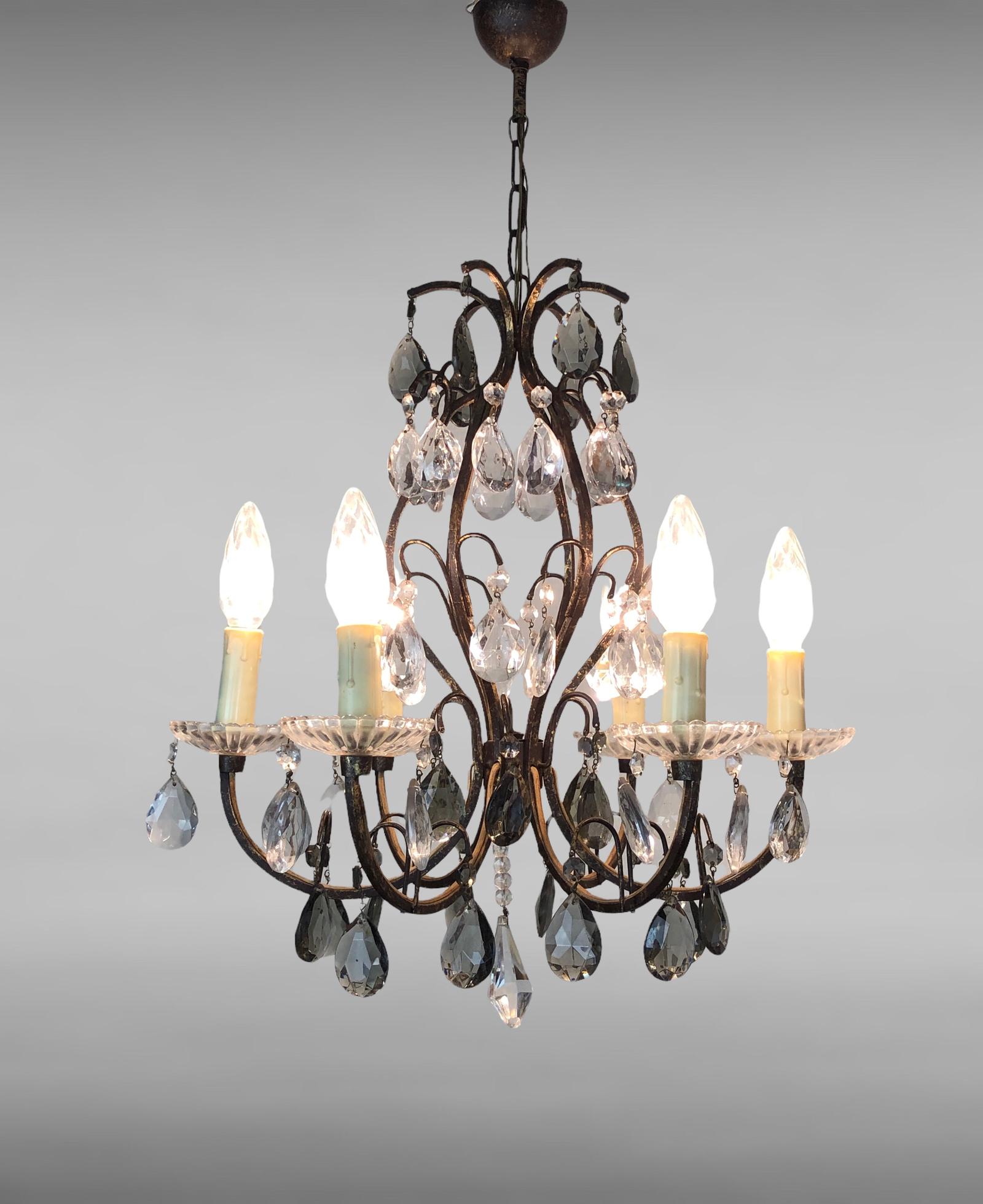 French Chandelier 6 Arm Ceiling Light With Glass Droplets