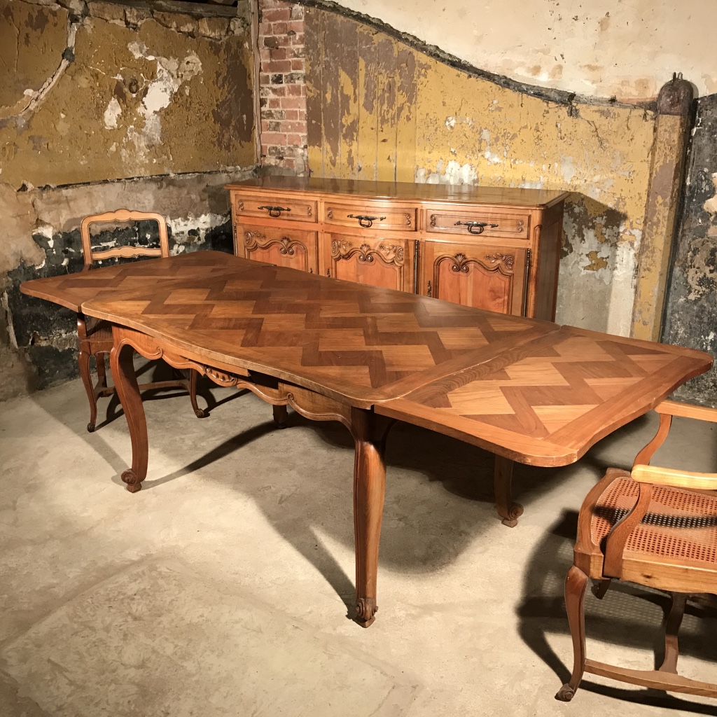 French Cherry Parquet Extending Dining Table c.1920 (1 of 1)