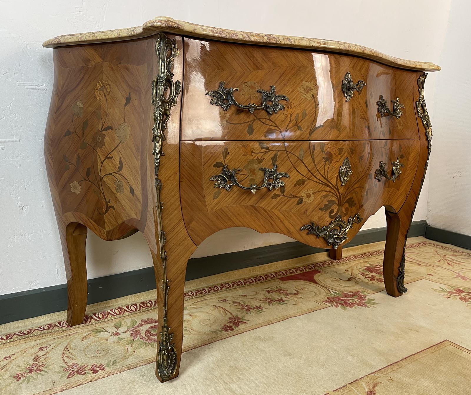 French Chest of Drawers Bombe Commode with Marble Top