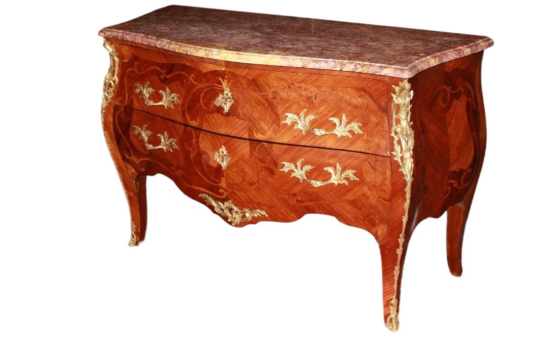 French Chest of Drawers from the 19th Century, Louis XV Style, in Richly Inlaid Bois de Rosewood