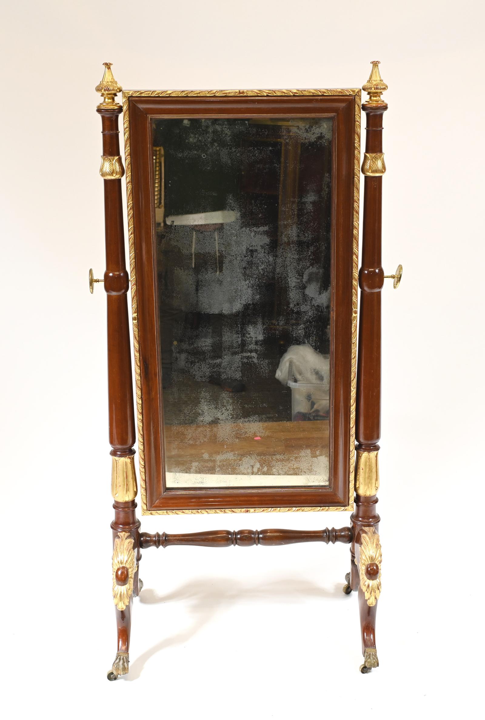 French Cheval Mirror Mahogany Gilt Antique 1890