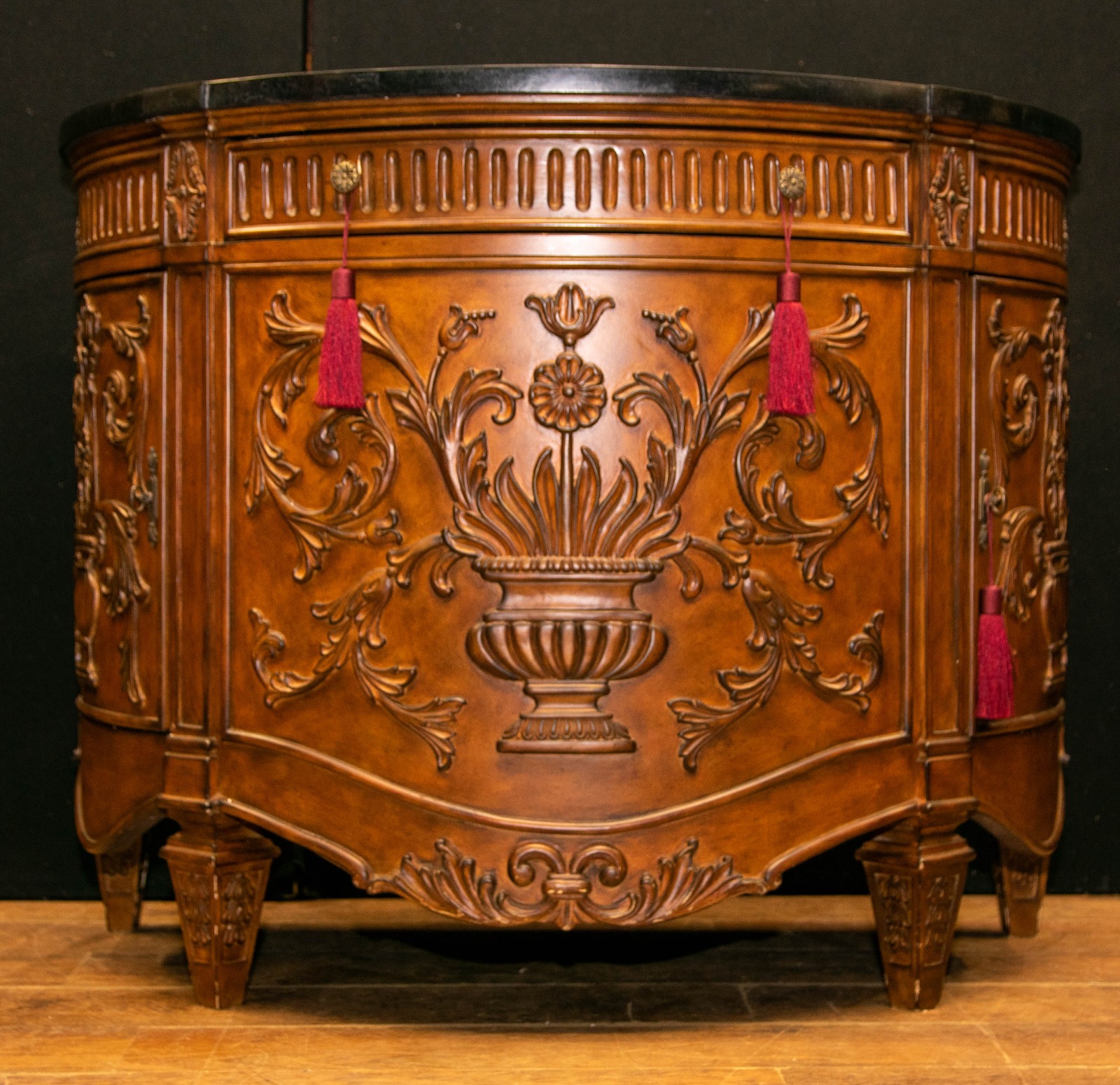 French Commode Cabinet - Walnut Carved Chest Demi Lune