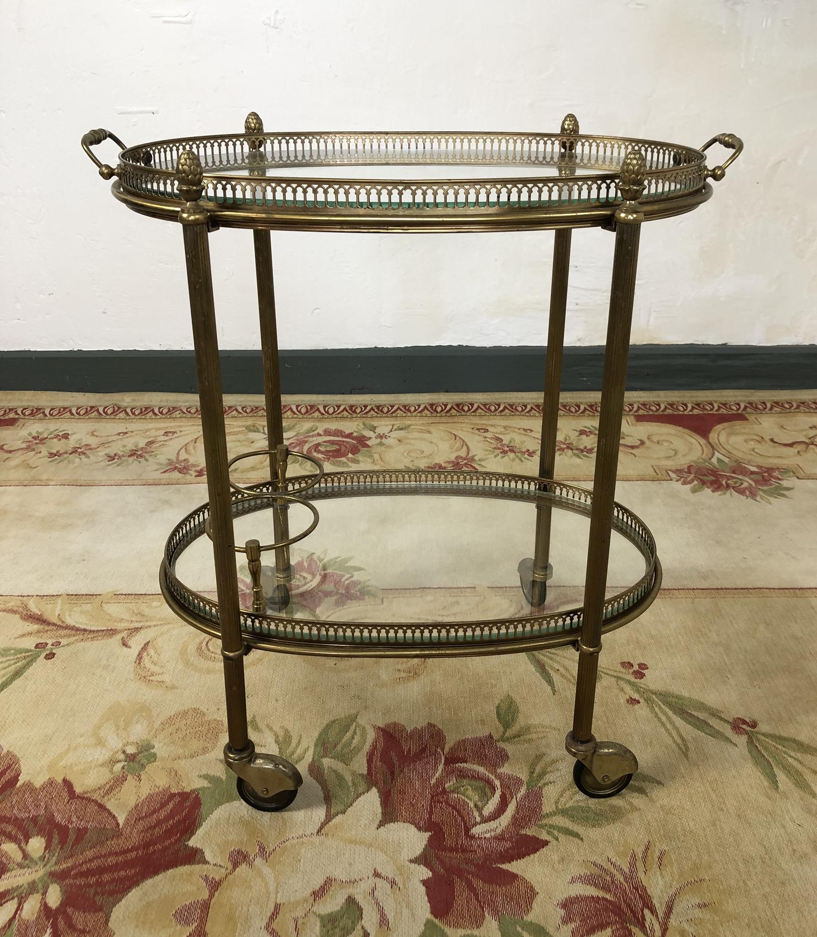 French Compact Brass Oval Drinks Trolley with Removable Tray