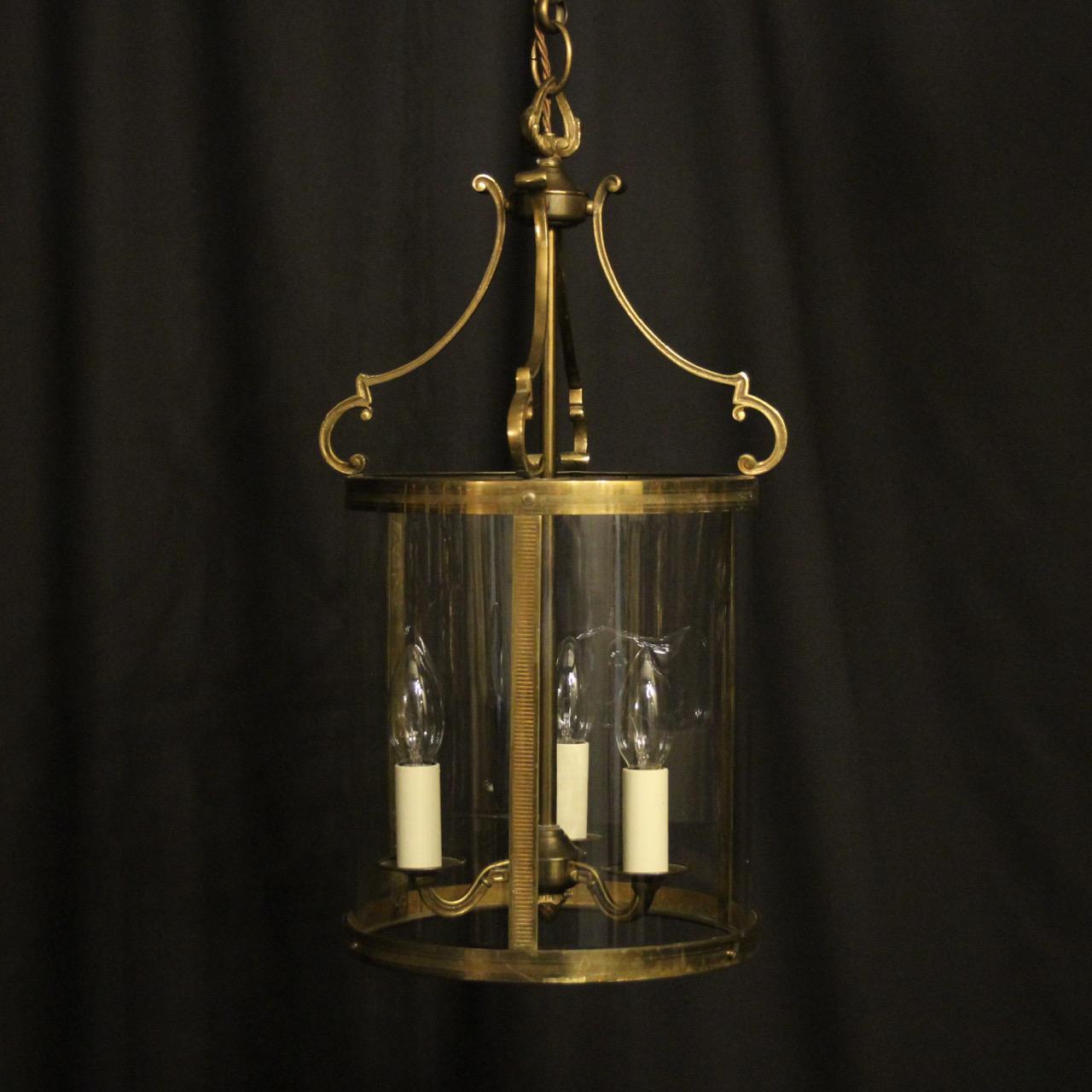 French Convex Gilded Brass Triple Light Antique Hall Lantern