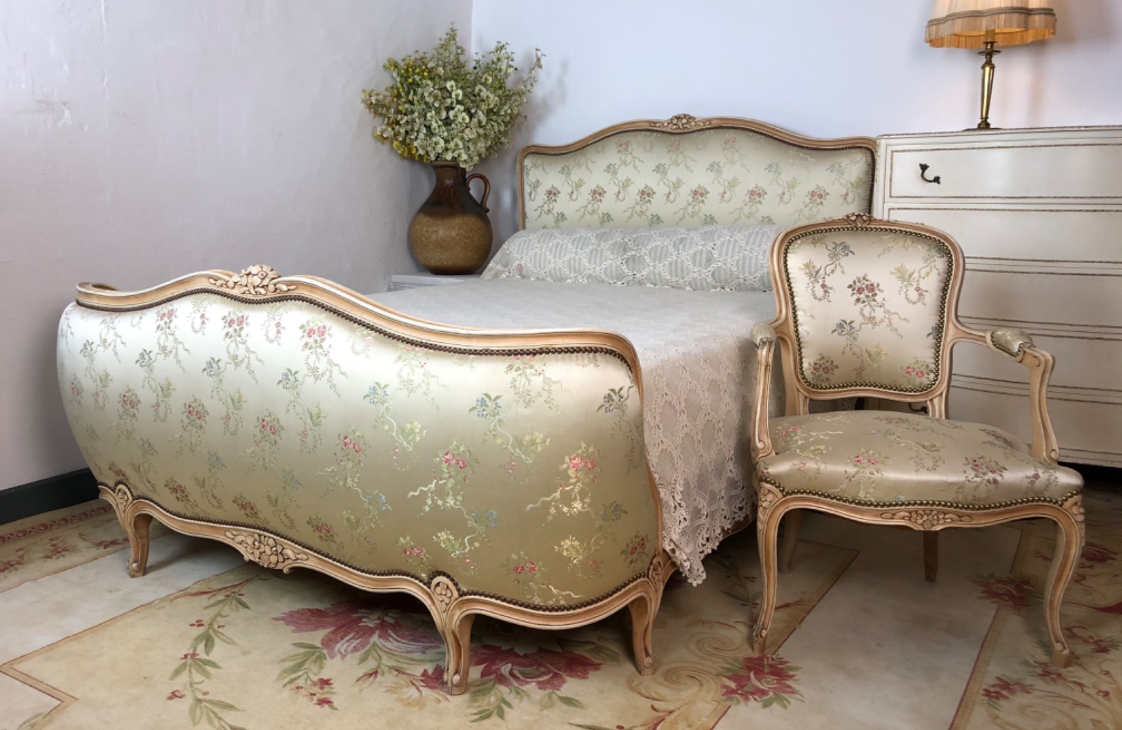 French Demi Corbeille Upholstered Double Bed Frame & Matching Chair