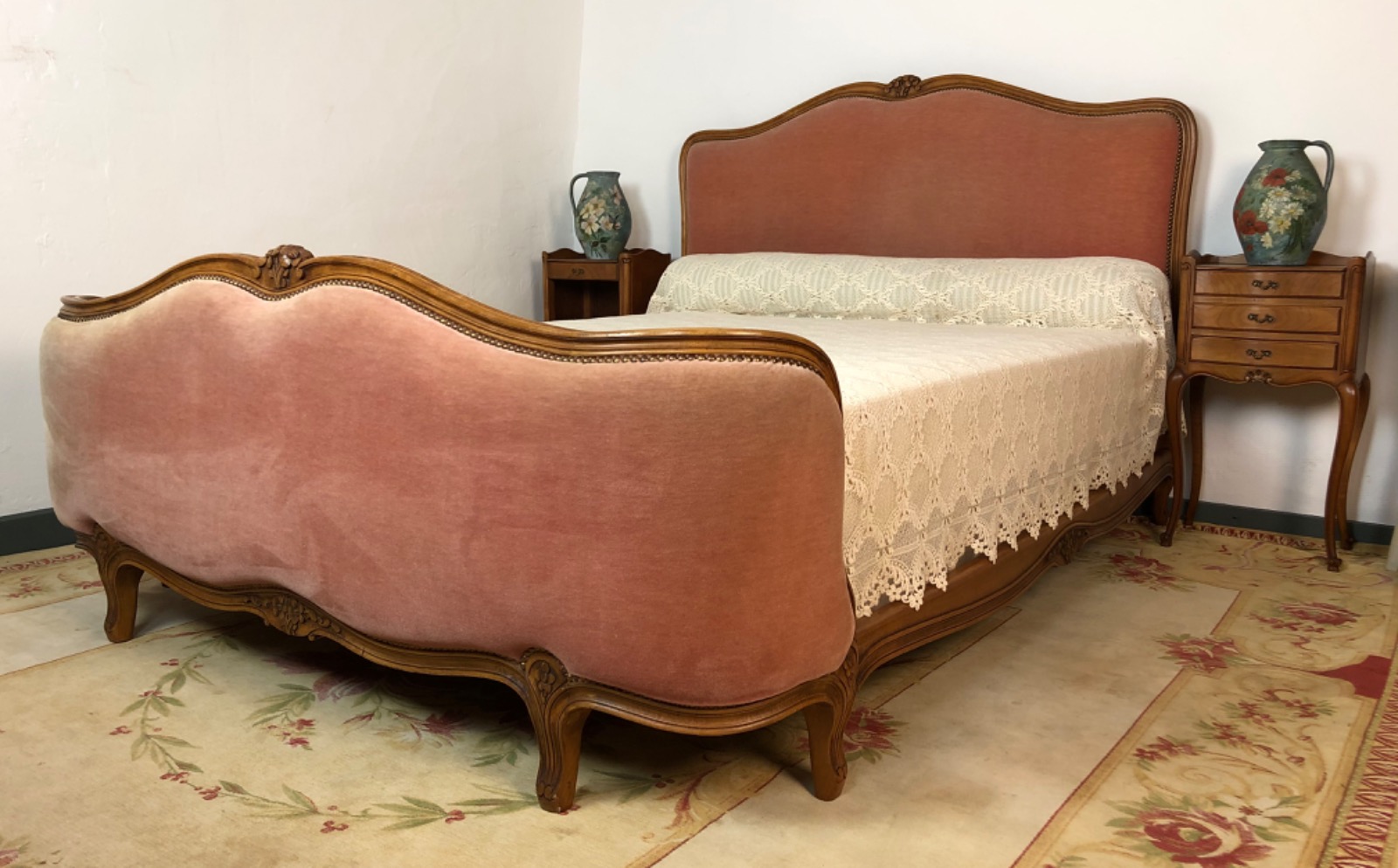 French Demi Corbeille Upholstered Kingsize Bed Frame