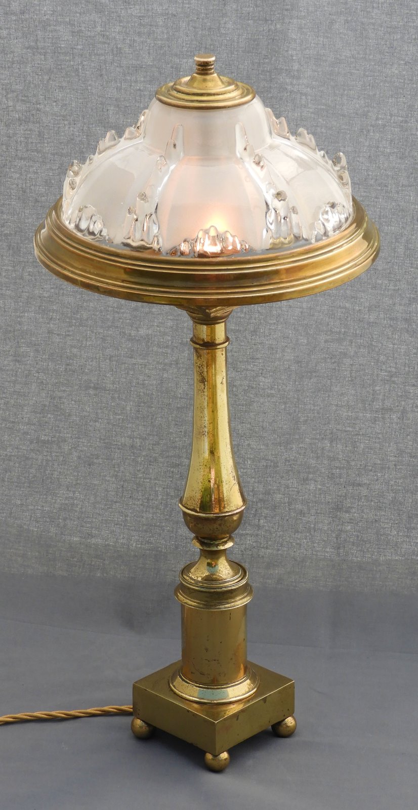 French Desk Lamp Ezan Style Glass & Brass c.1910