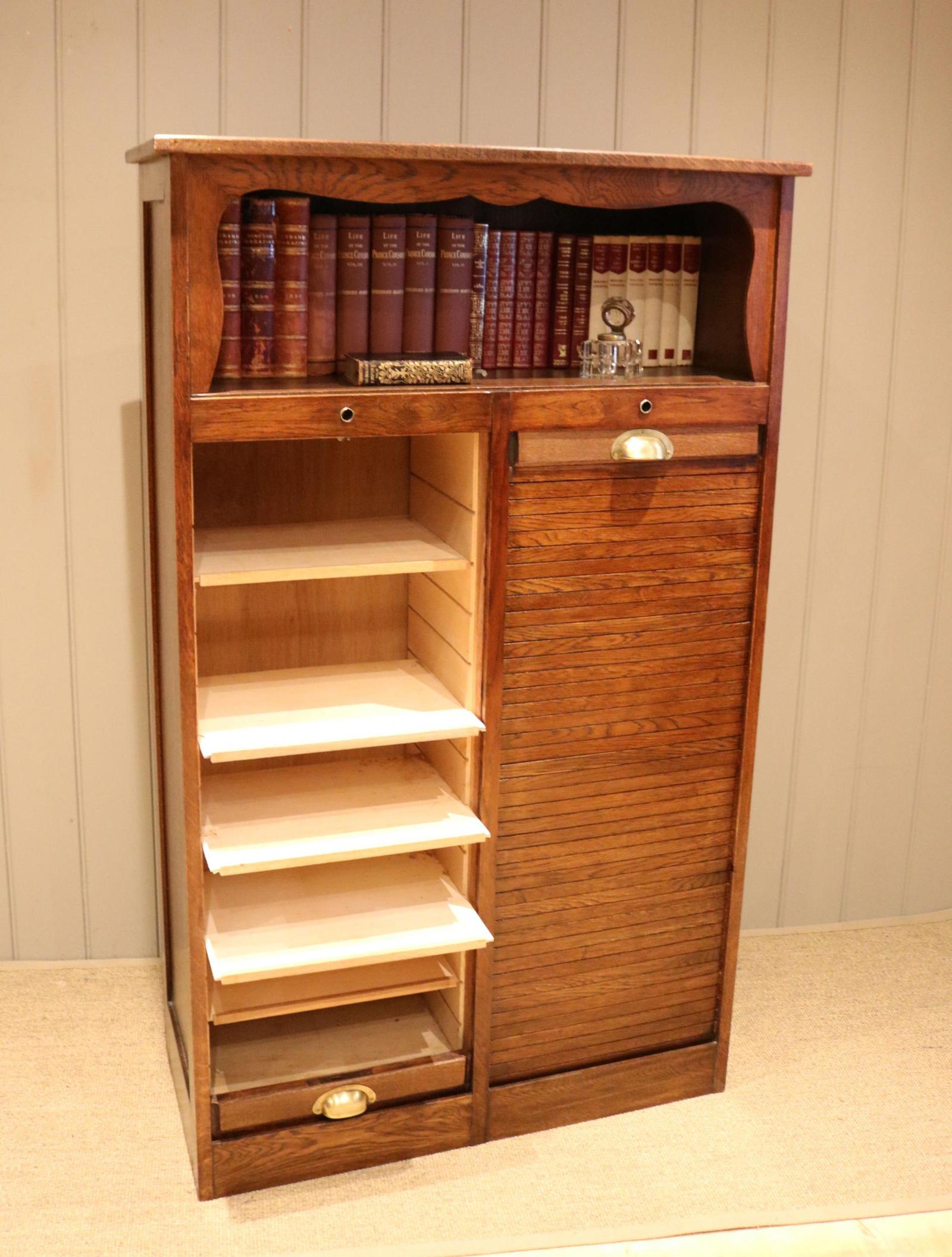 French Double Tambour Front Filing Cabinet c 1920