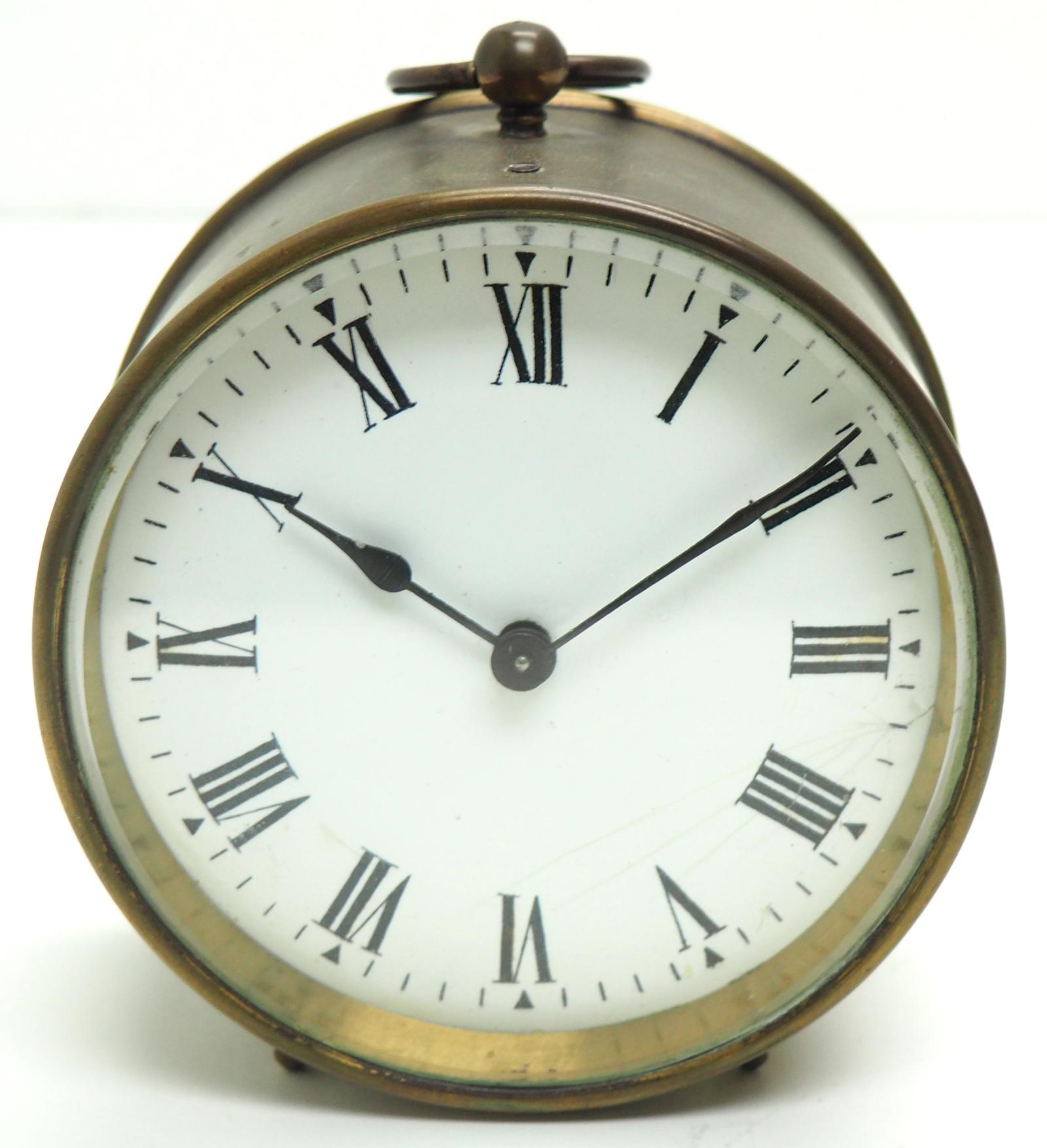 French Drum Carriage Clock Rare Enamel Dial Drum Case Mantel Clock Platform Balance (1 of 8)