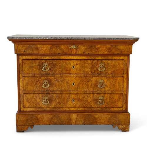 French Early 19th Century c.1815-30 Burr Walnut Commode Charles X