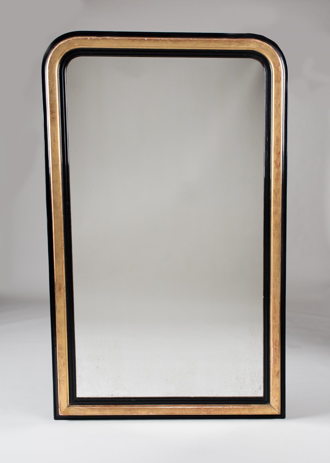 French Ebonised & Gilt Overmantle Mirror with Gilt Etched Decoration c.1900 (1 of 1)