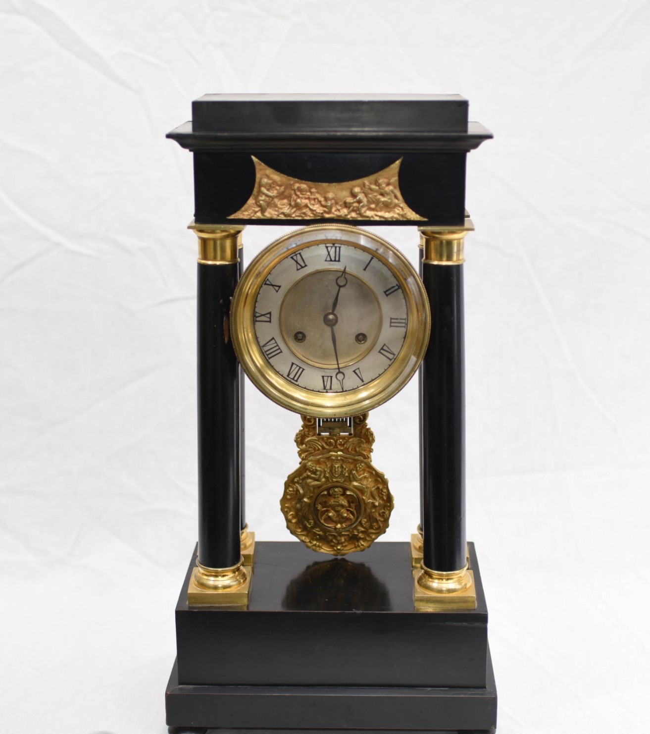 French Empire Antique Clock Gilt & Lacquer c.1890