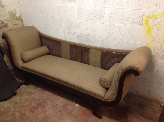 French Empire Chaise Longue with Part Bergere Back 220cm Long Metal Sprung Seat