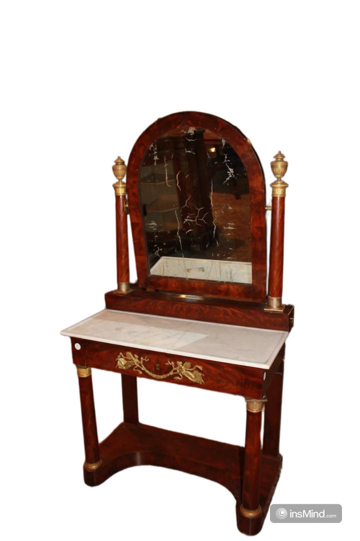 French Empire Console Dressing Table in Mahogany Veneer - Early 19th Century