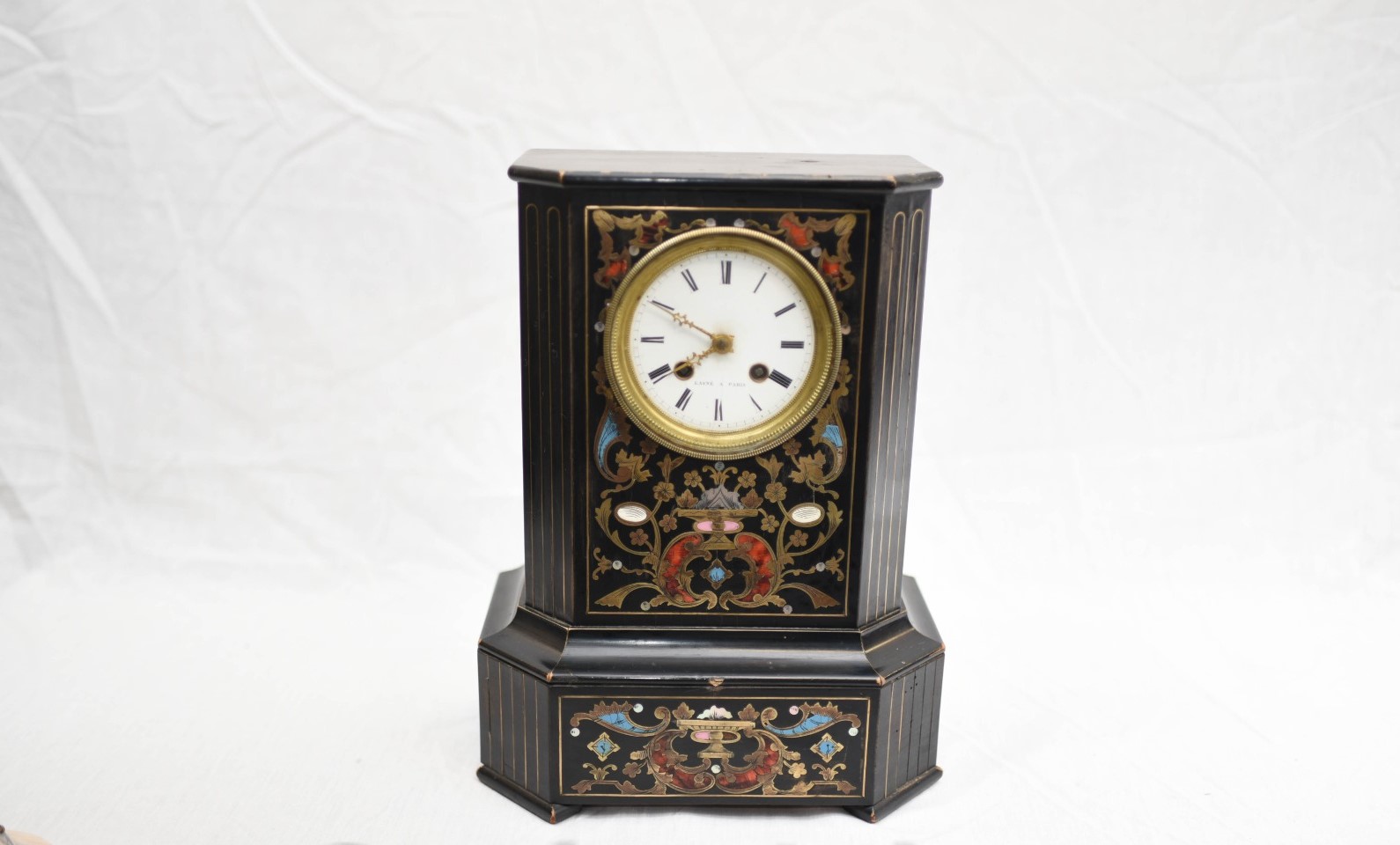 French Empire Mantel Clock Antique Lacquer Laine Paris