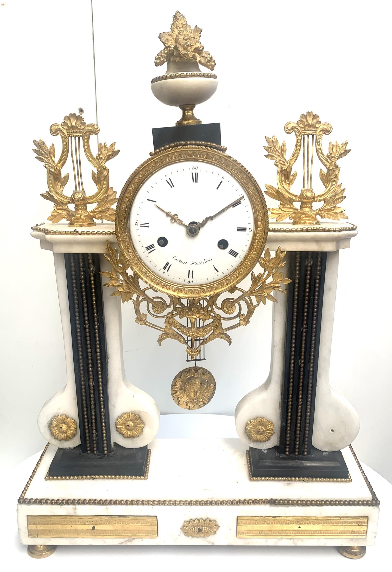French Empire Marble Portico Clock Pillar Striking 8-day Mantel Clock by Signed