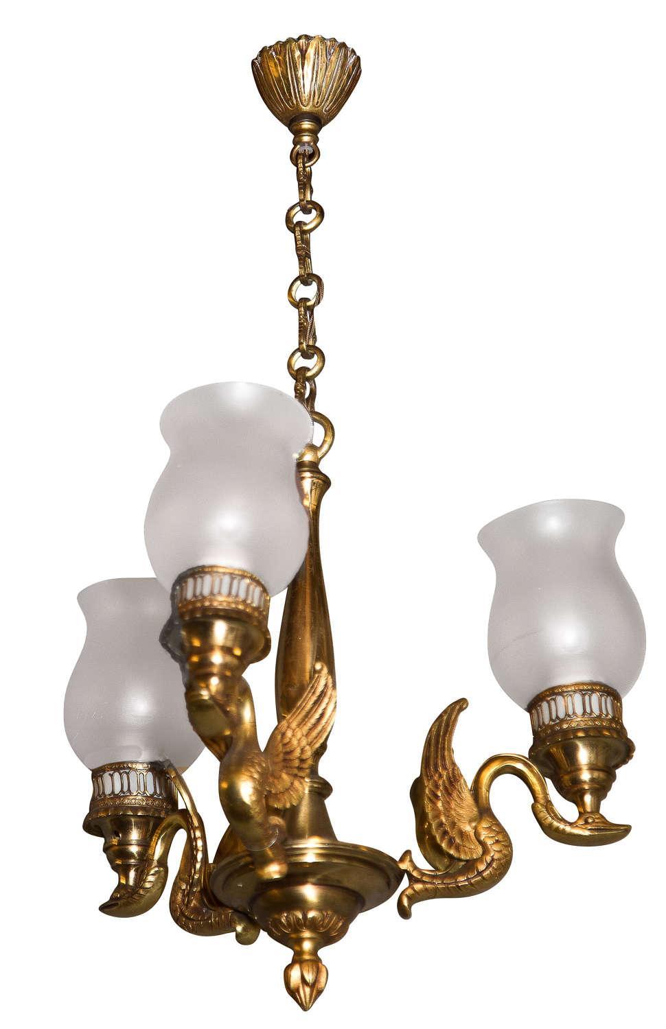 French Empire Style 3 Arm Light Fitting with Decoration & Glass Shades