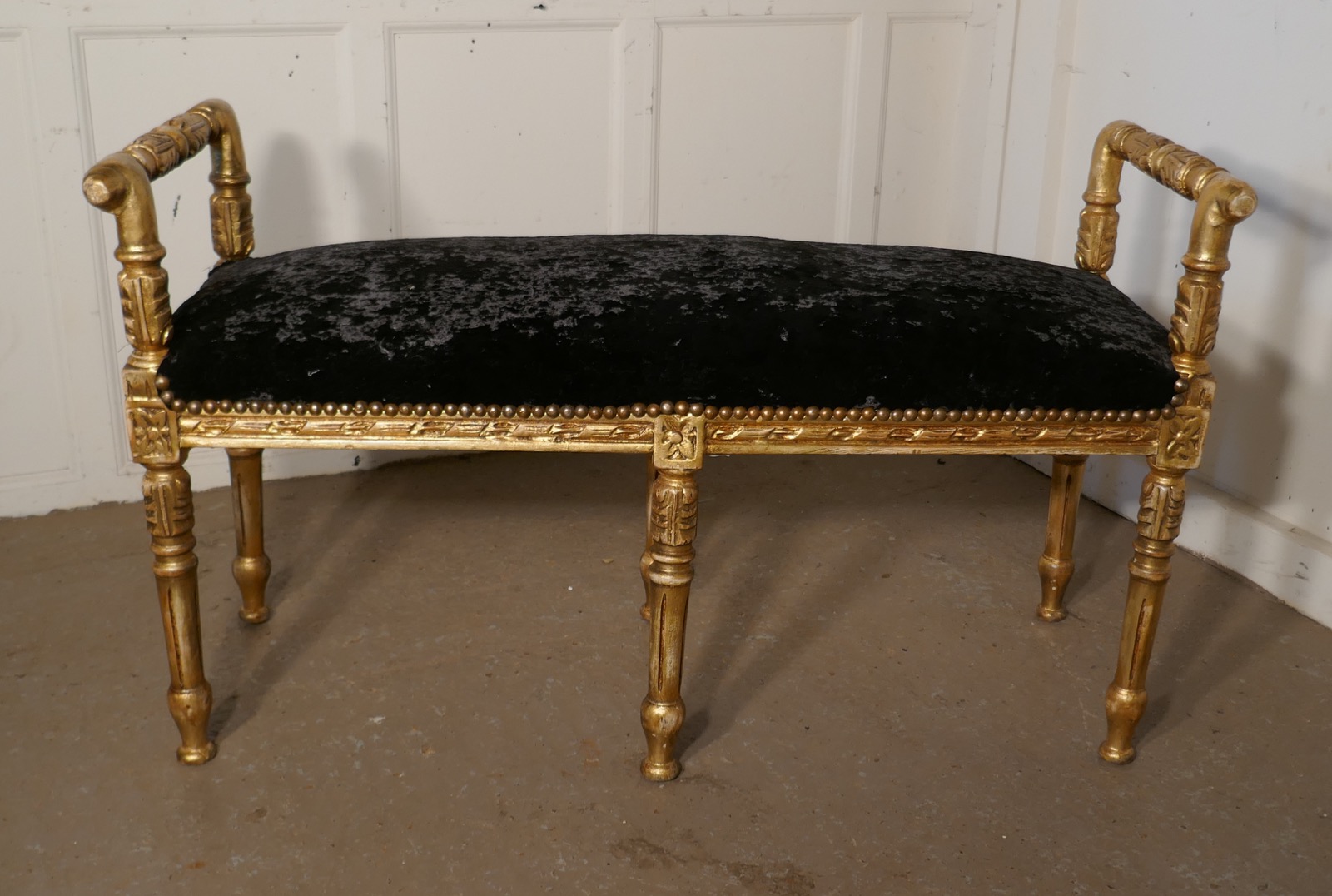 French Empire Style Gilt Boudoir Window Seat, Velvet Upholstery