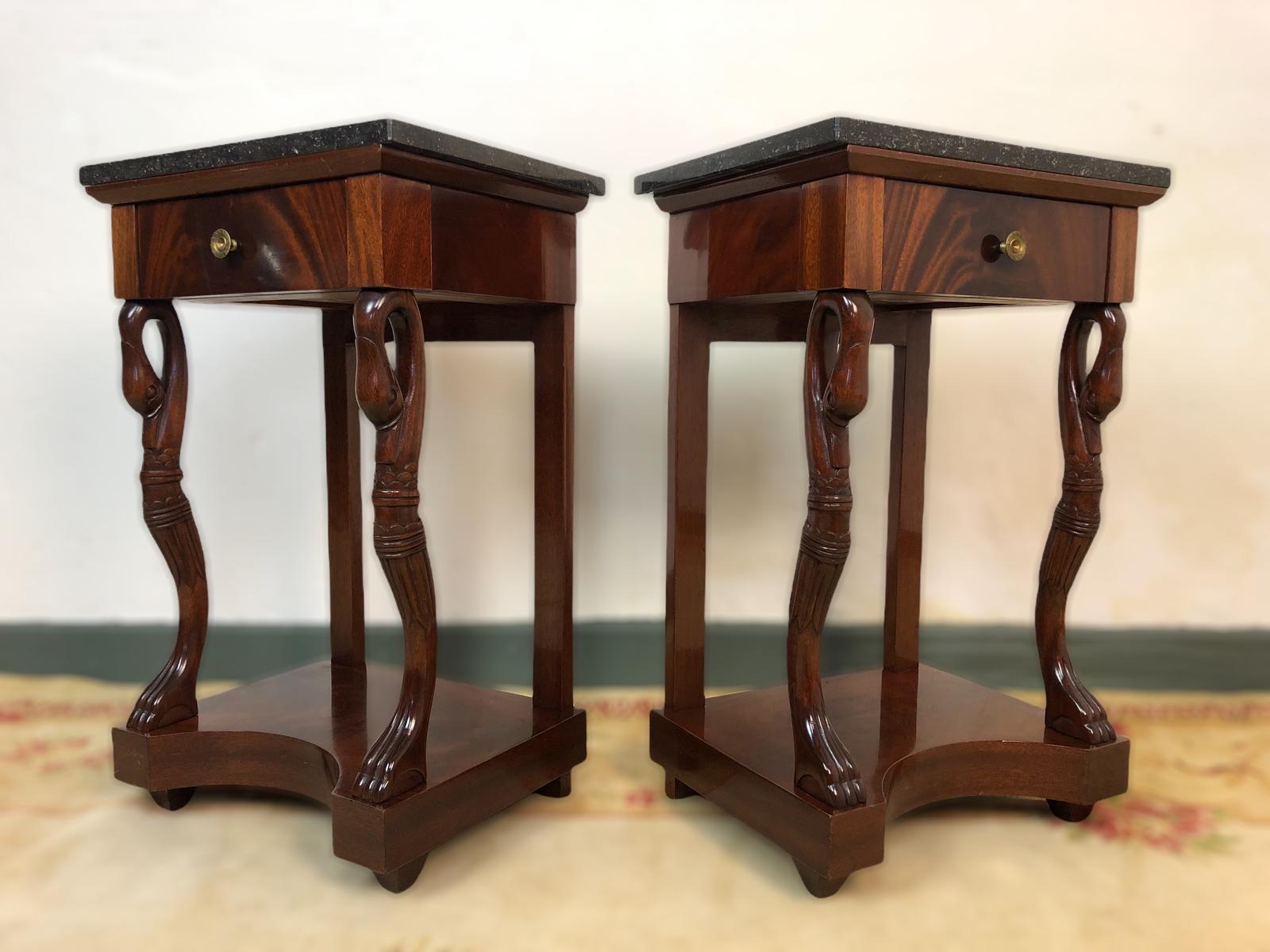 French Empire Style Glossy Mahogany Bedside Tables Cabinets