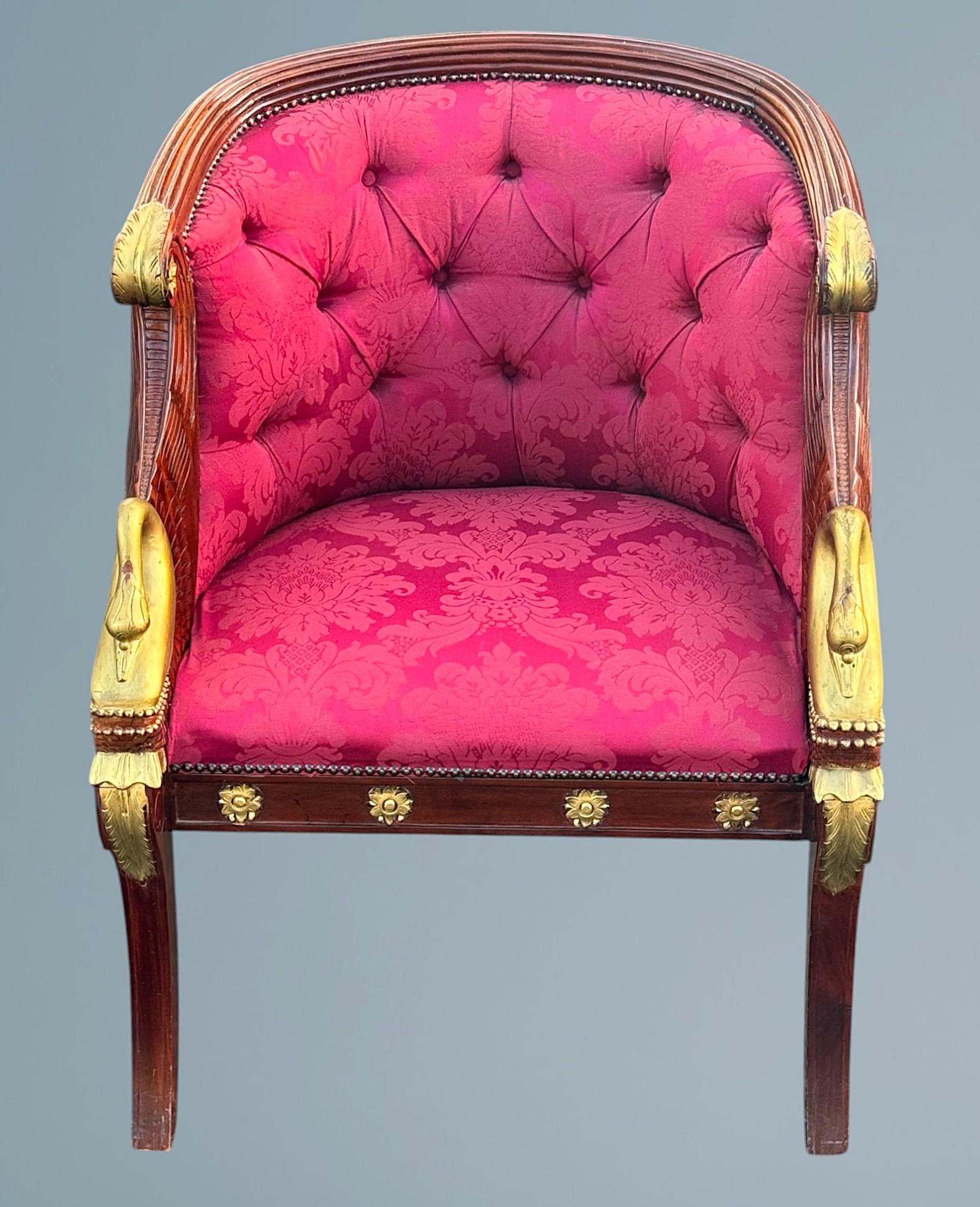 French Empire Style Mahogany and Parcel Gilt Swan Chair