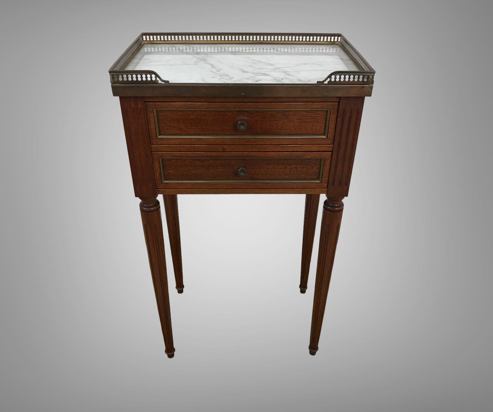 French Empire Style Mahogany Marble Top Bedside / End Table