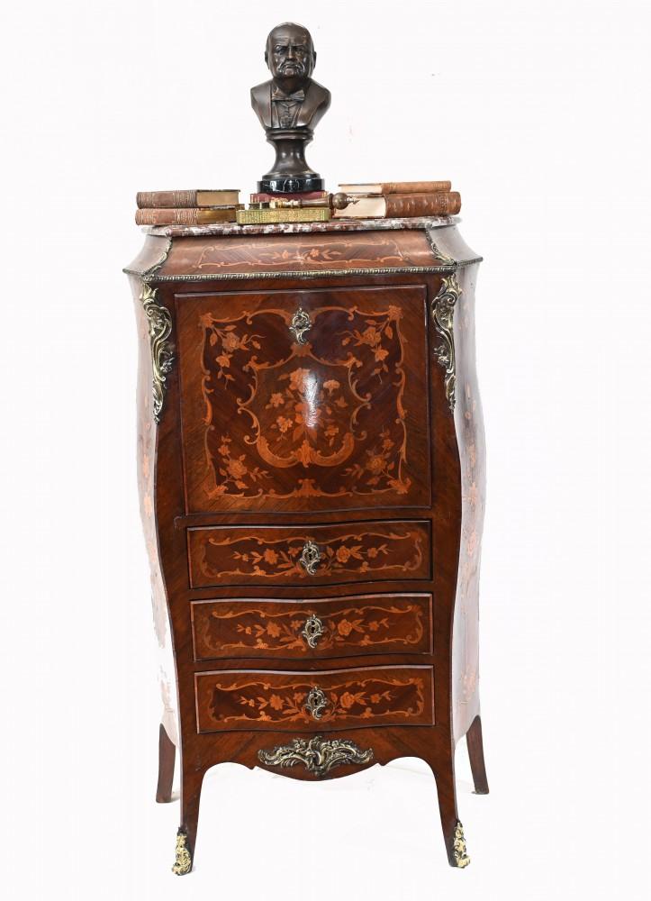 French Escritoire Desk Empire Antique Marquetry Inlay