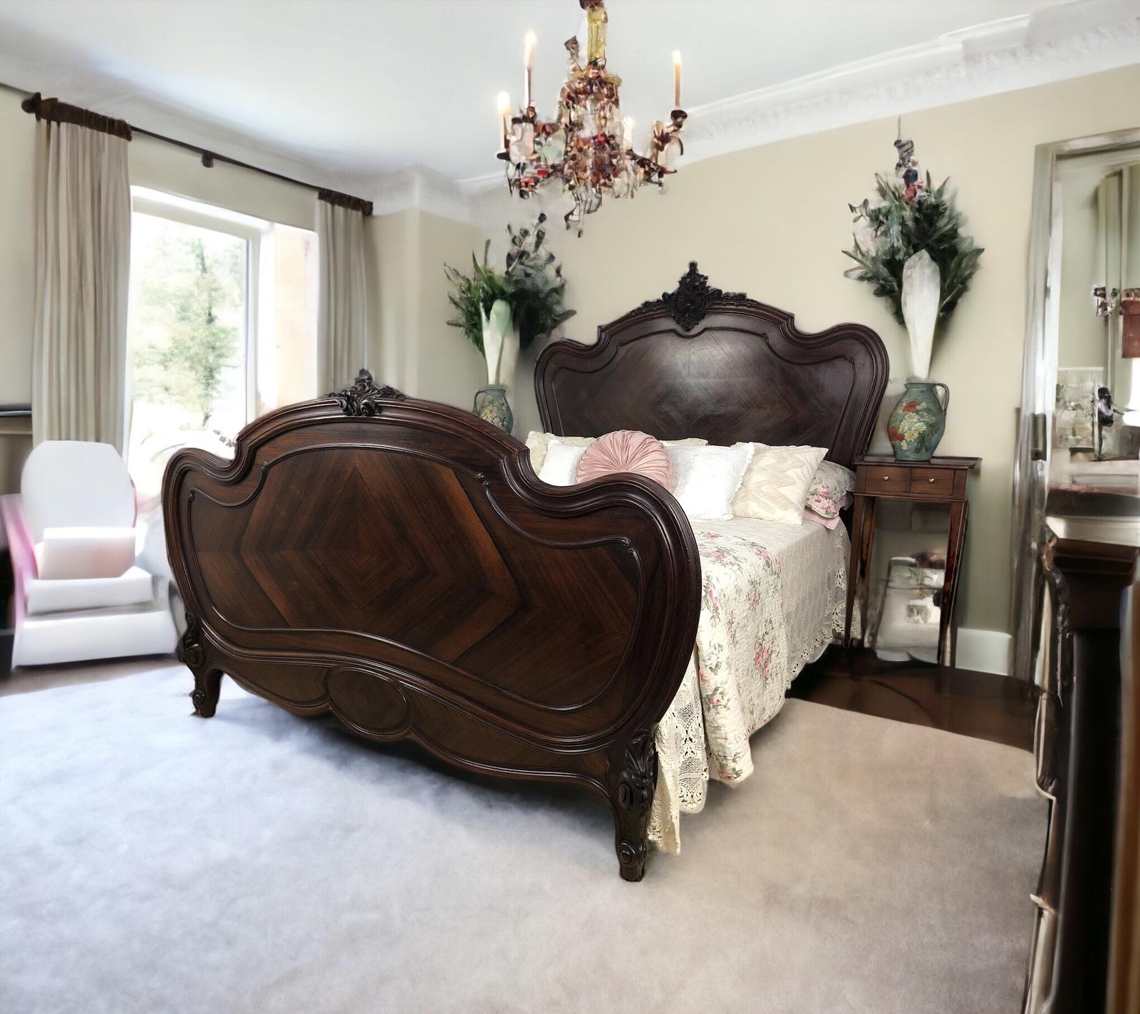 French Exotic Wood Carved Bed Frame inc Slatted Base
