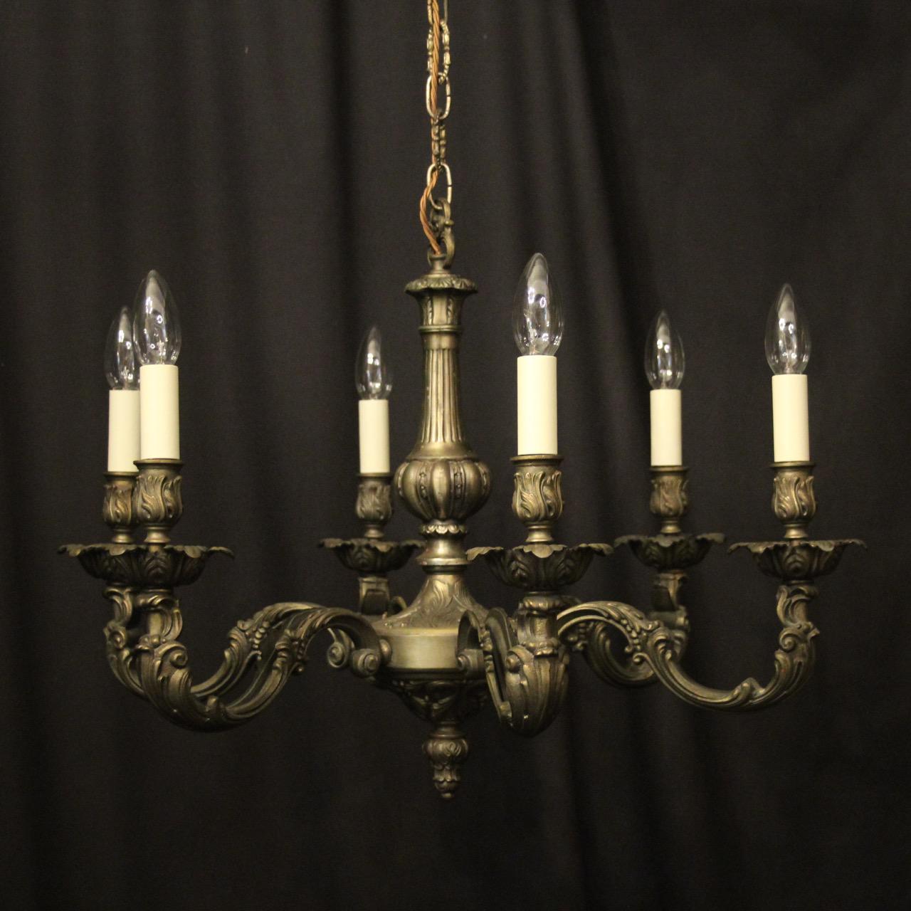 French Faded Silver Gilded 6 Light Chandelier