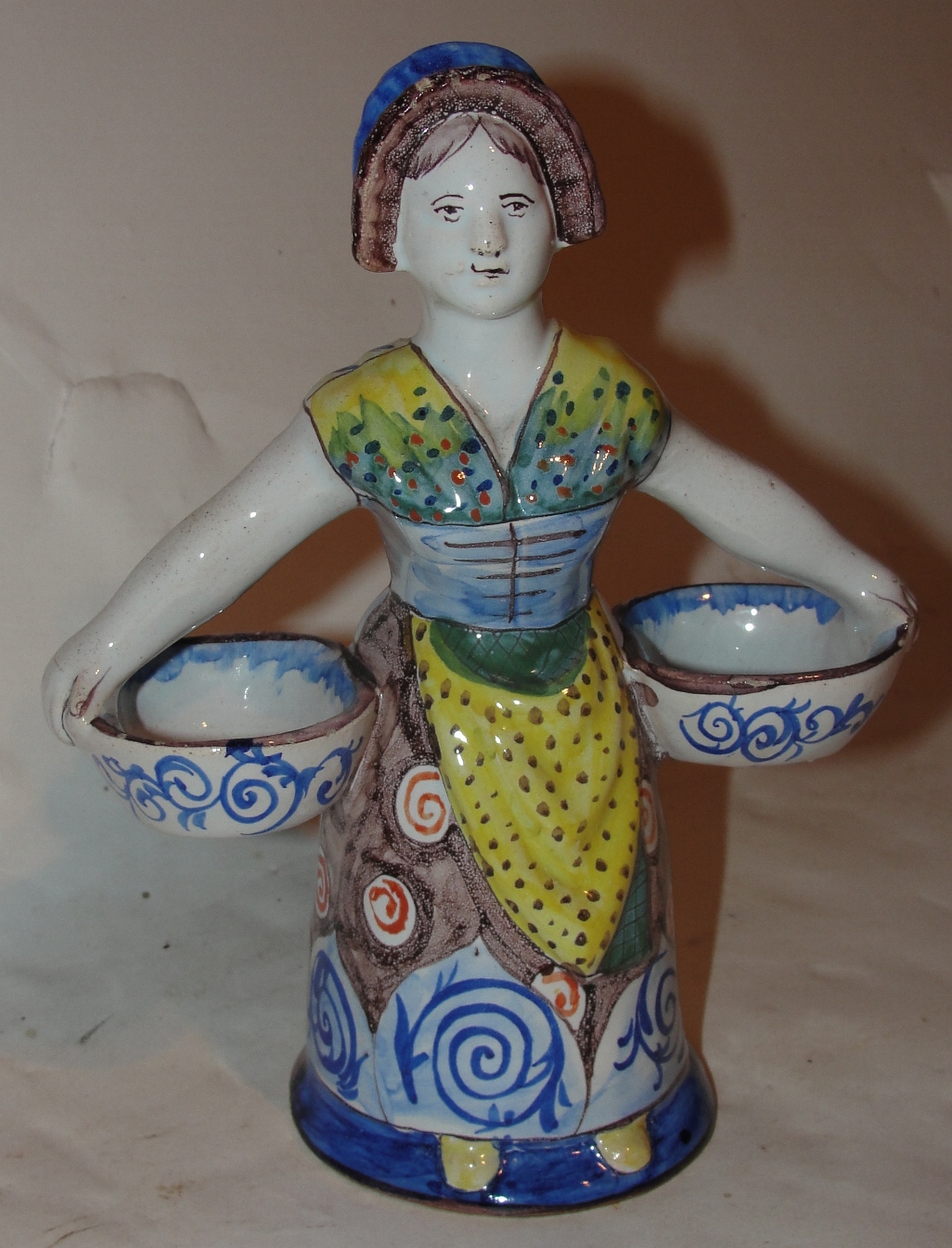 French Faience Double Sided Lady Salt Cellar