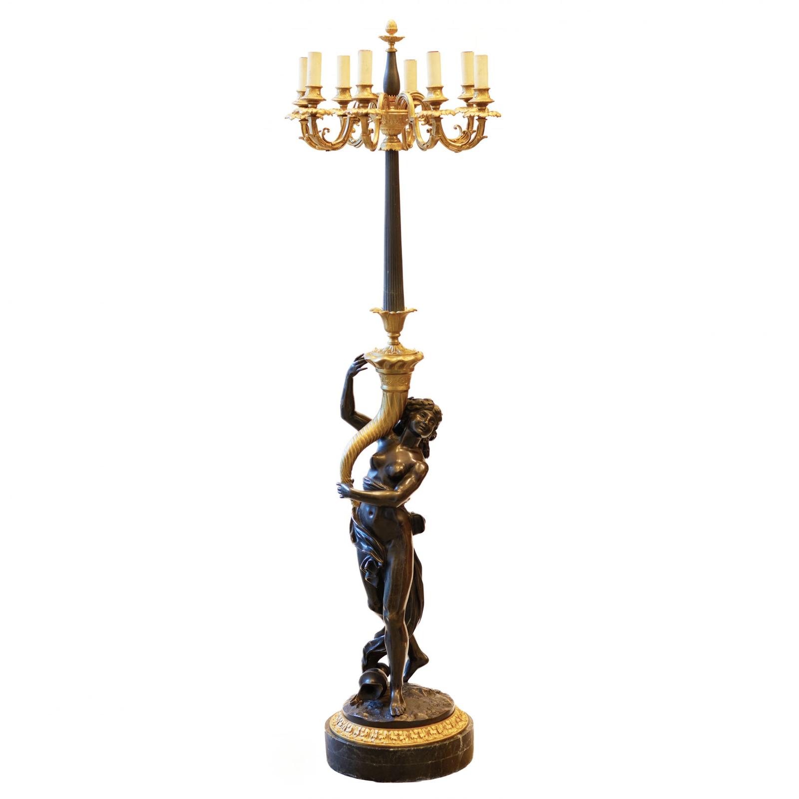 French Floor Lamp made of Gilded and Patinated Bronze. The Turn of the 19th and 20th Centuries.