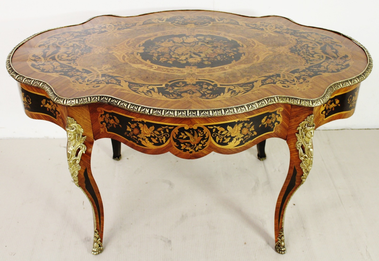 French Floral Marquetry Serpentine Shaped Table c.1880 (1 of 1)