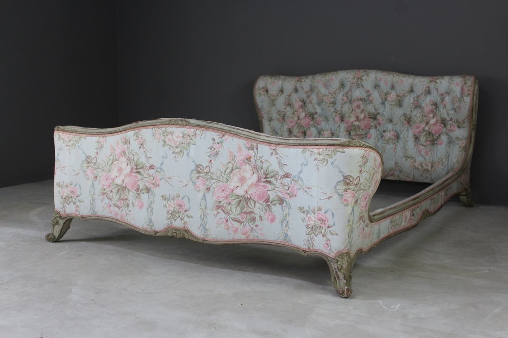 French Floral Upholstered Corbeille Bed Frame