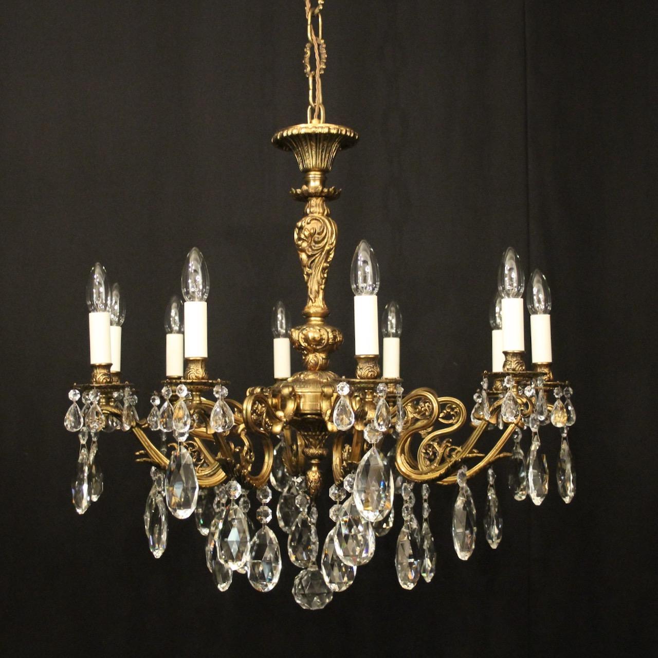 French Gilded Brass 12 Light Chandelier