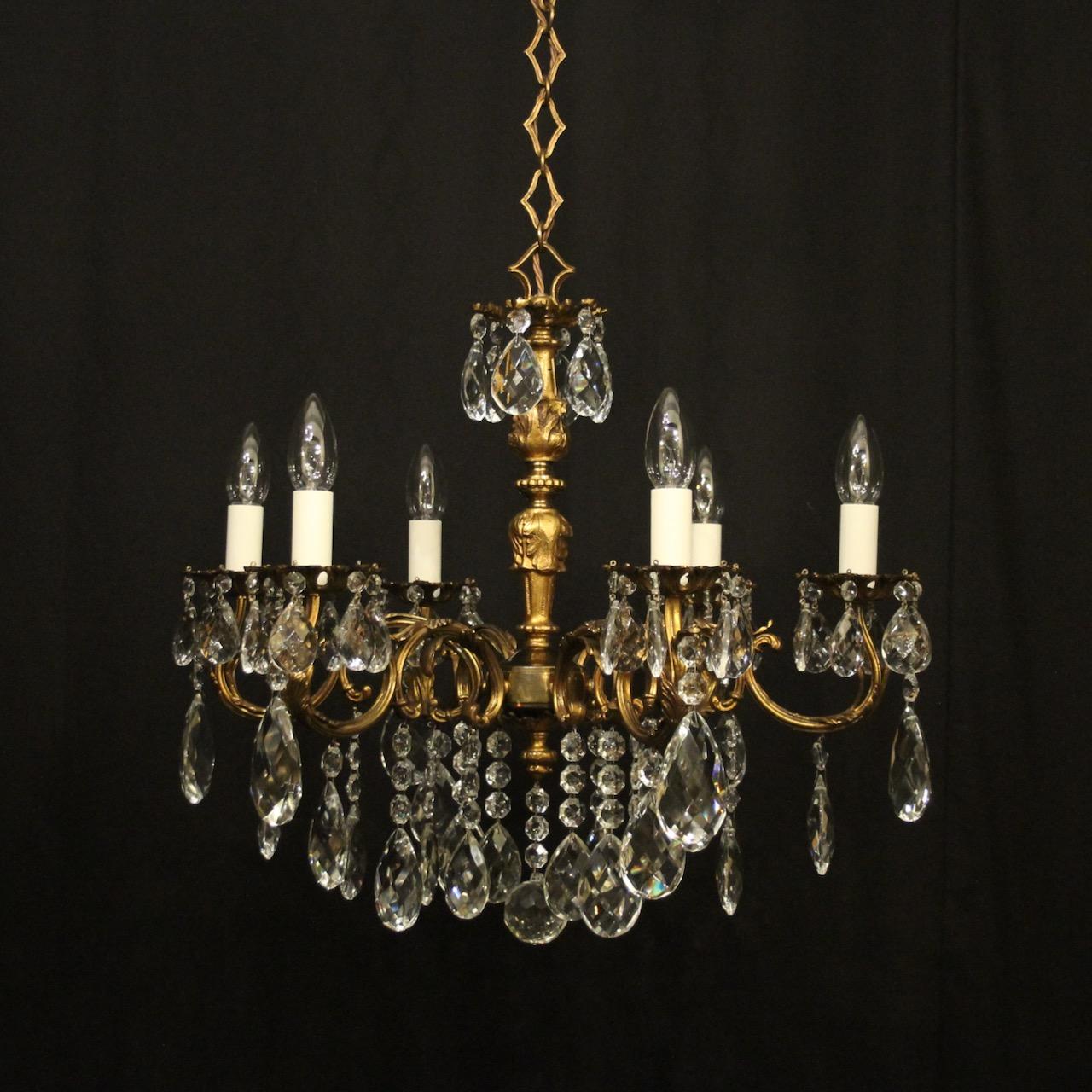 French Gilded 6 Light Antique Chandelier