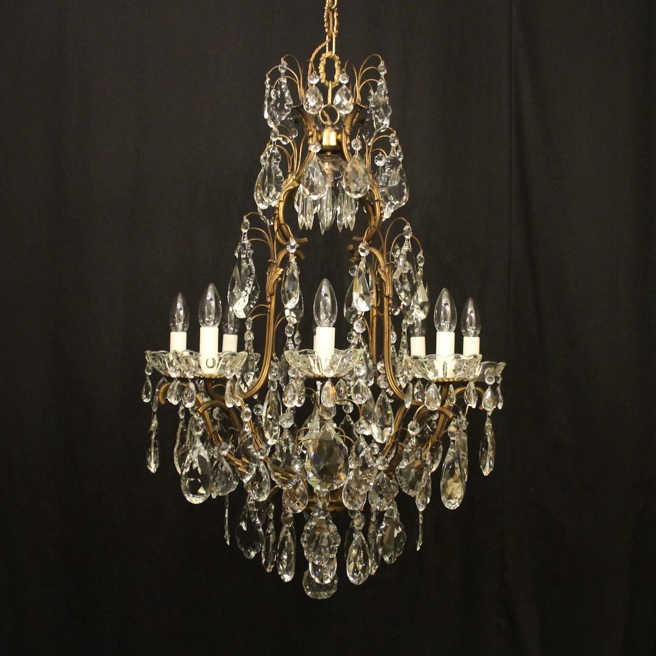 French Gilded 9 Light Antique Crystal Chandelier