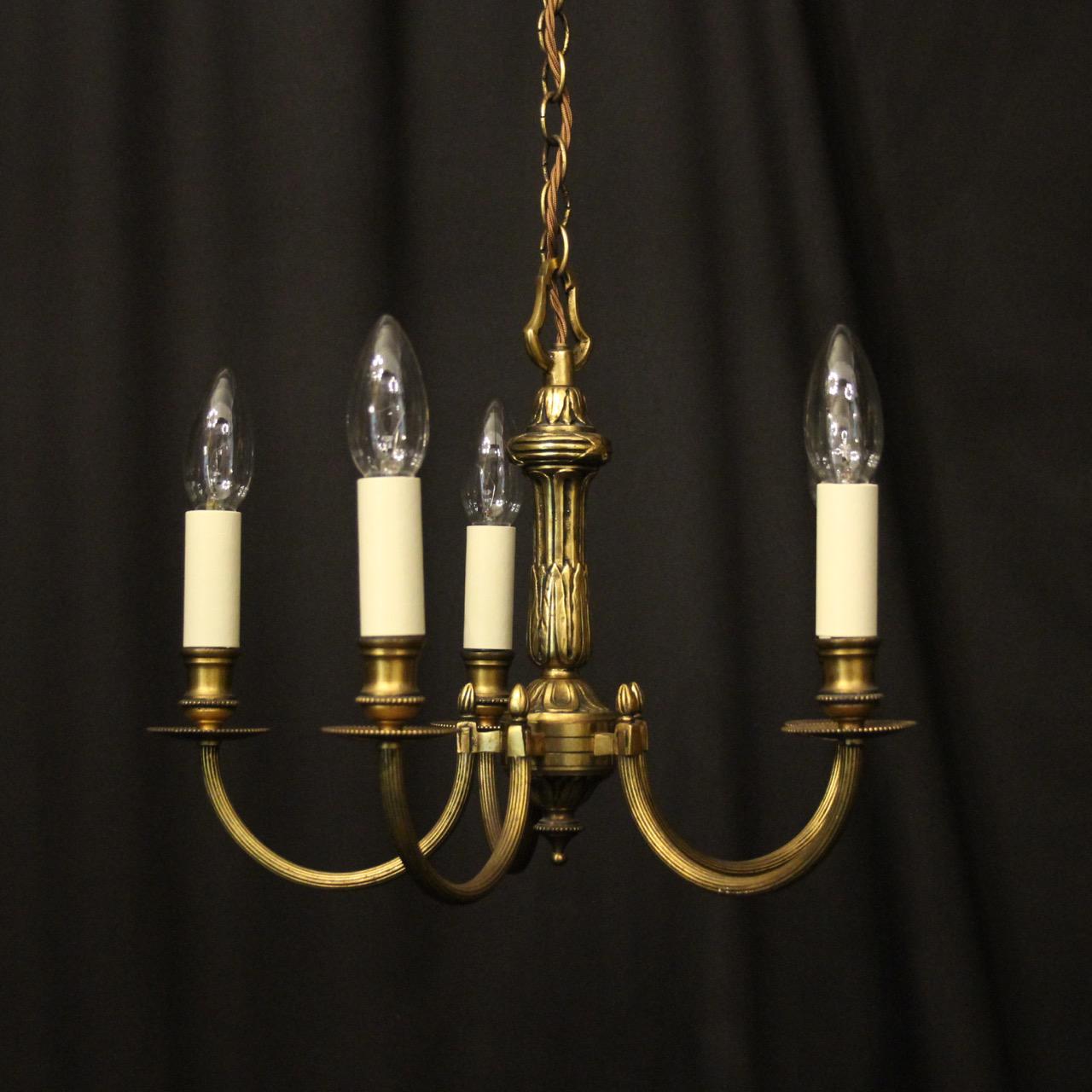 French Gilded Brass 5 Light Antique Chandelier