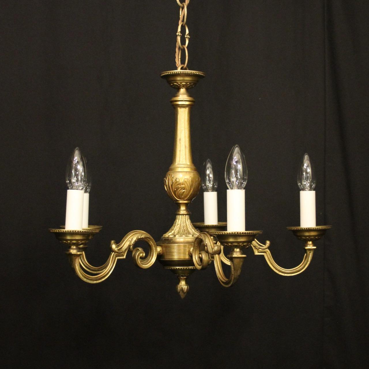 French Gilded Brass 5 Light Chandelier