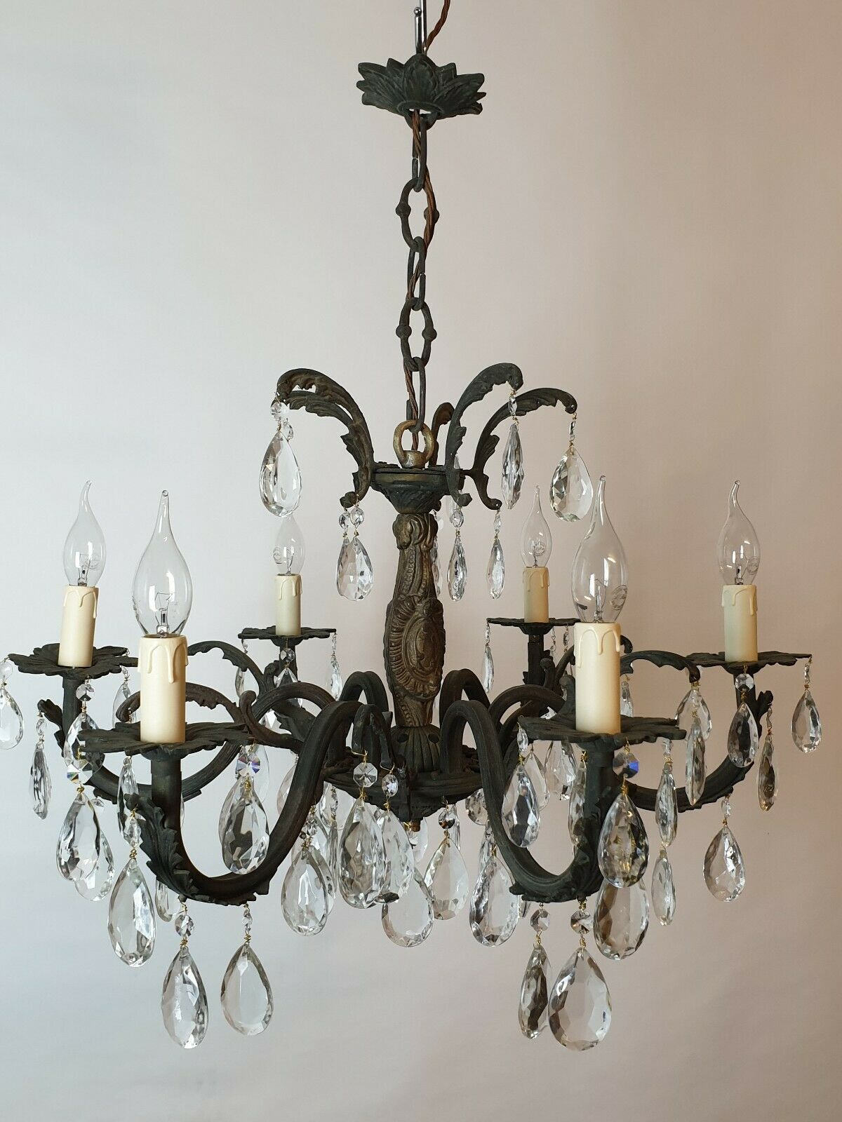 French Gilded Brass 6 Arm Chandelier, Rewired c.1910