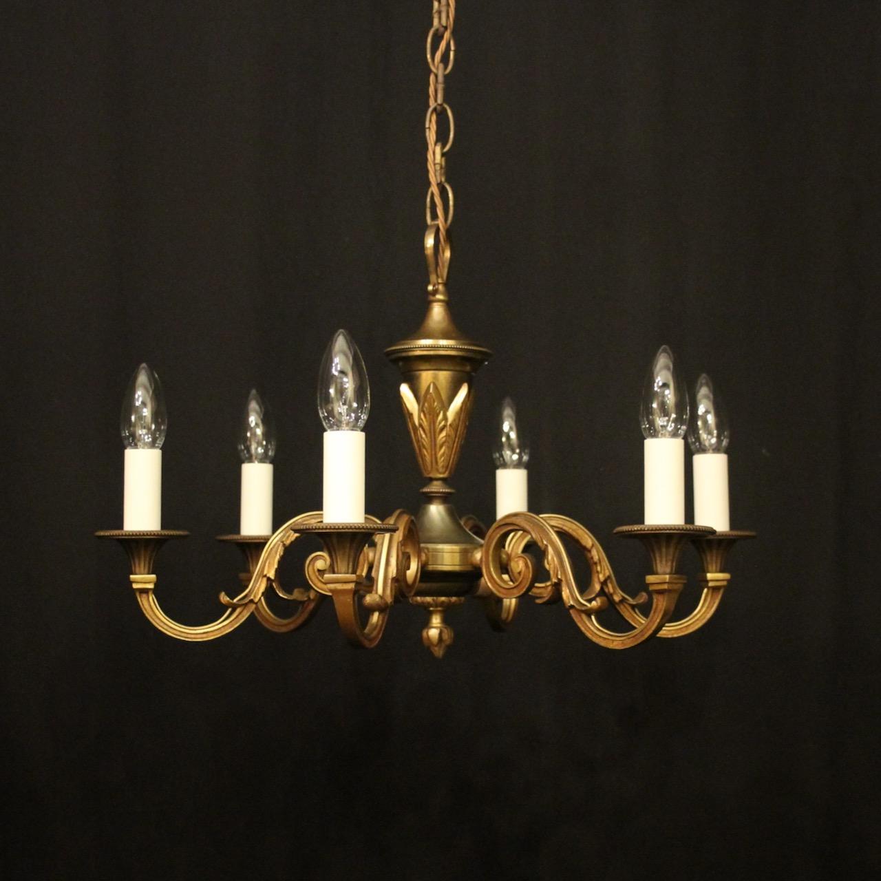 French Gilded Brass 6 Light Antique Chandelier
