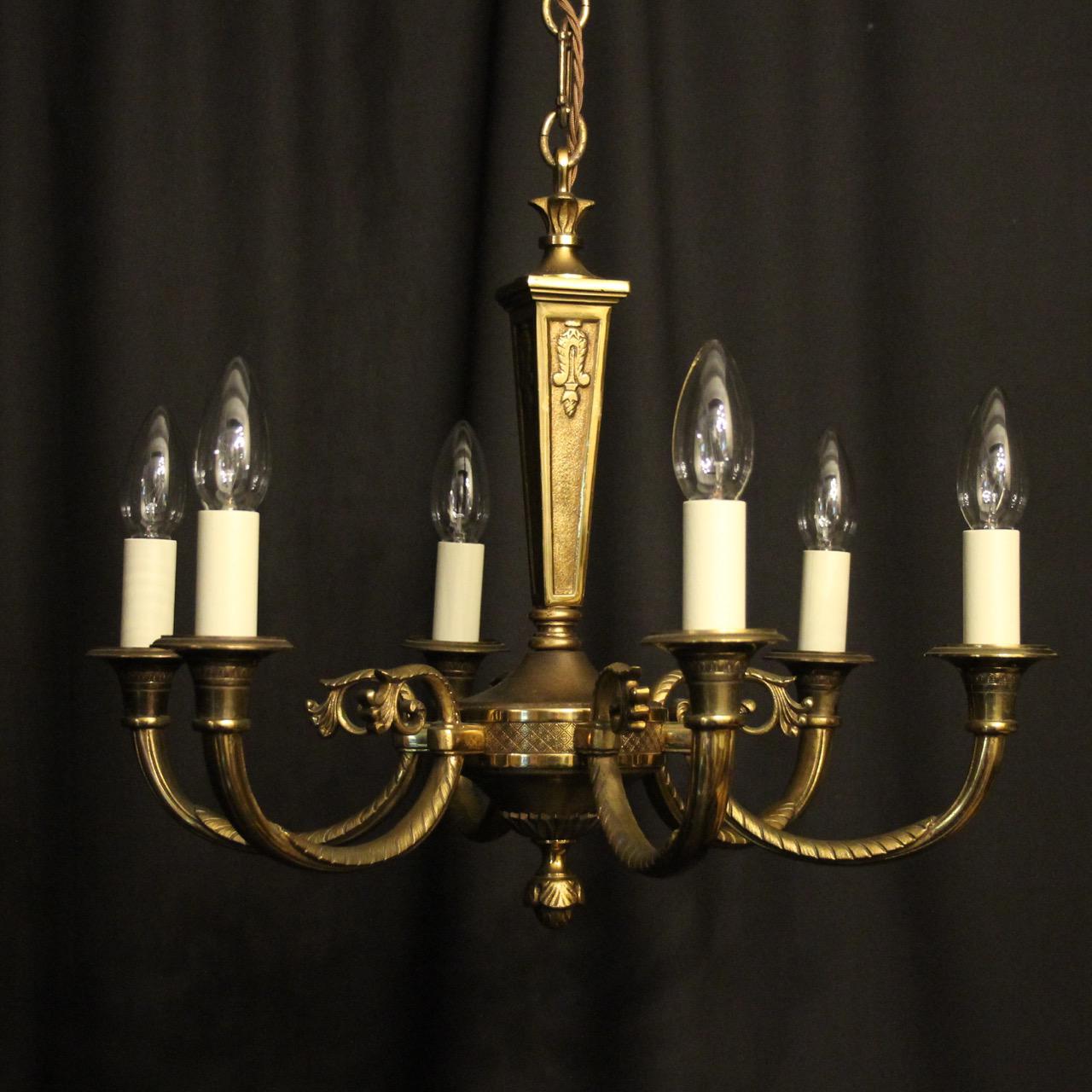 French Gilded Brass 6 Light Chandelier