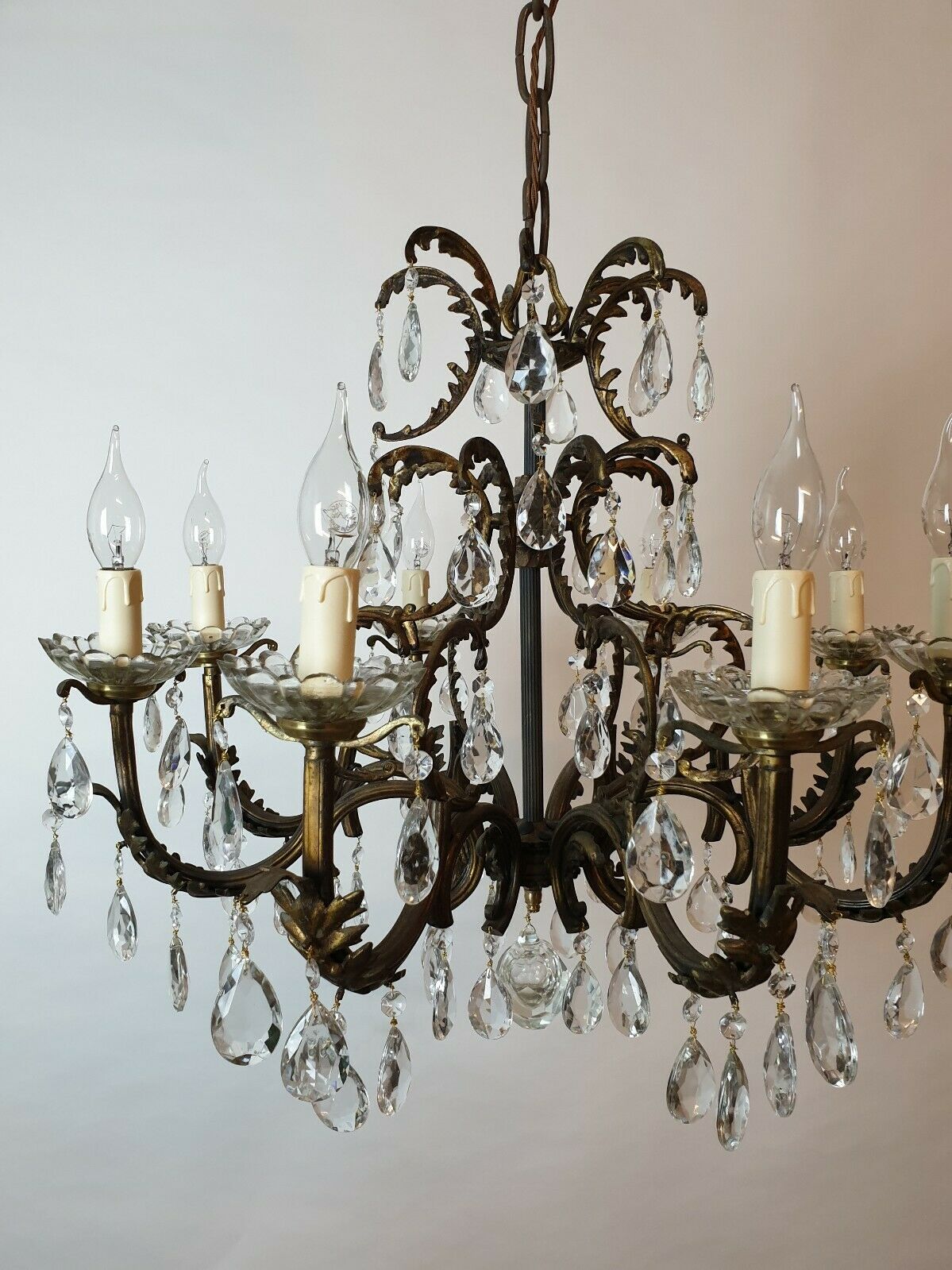 French Gilded Brass 8 Arm Chandelier, Rewired c.1910