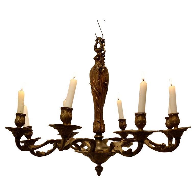 French Gilded Brass 8 Branch Rococo Chandelier