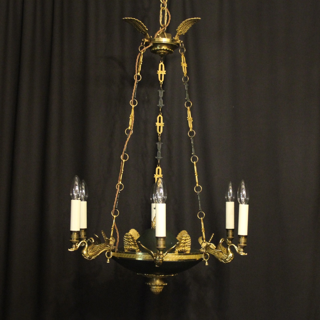 French Gilded Brass Empire 6 Light Chandelier
