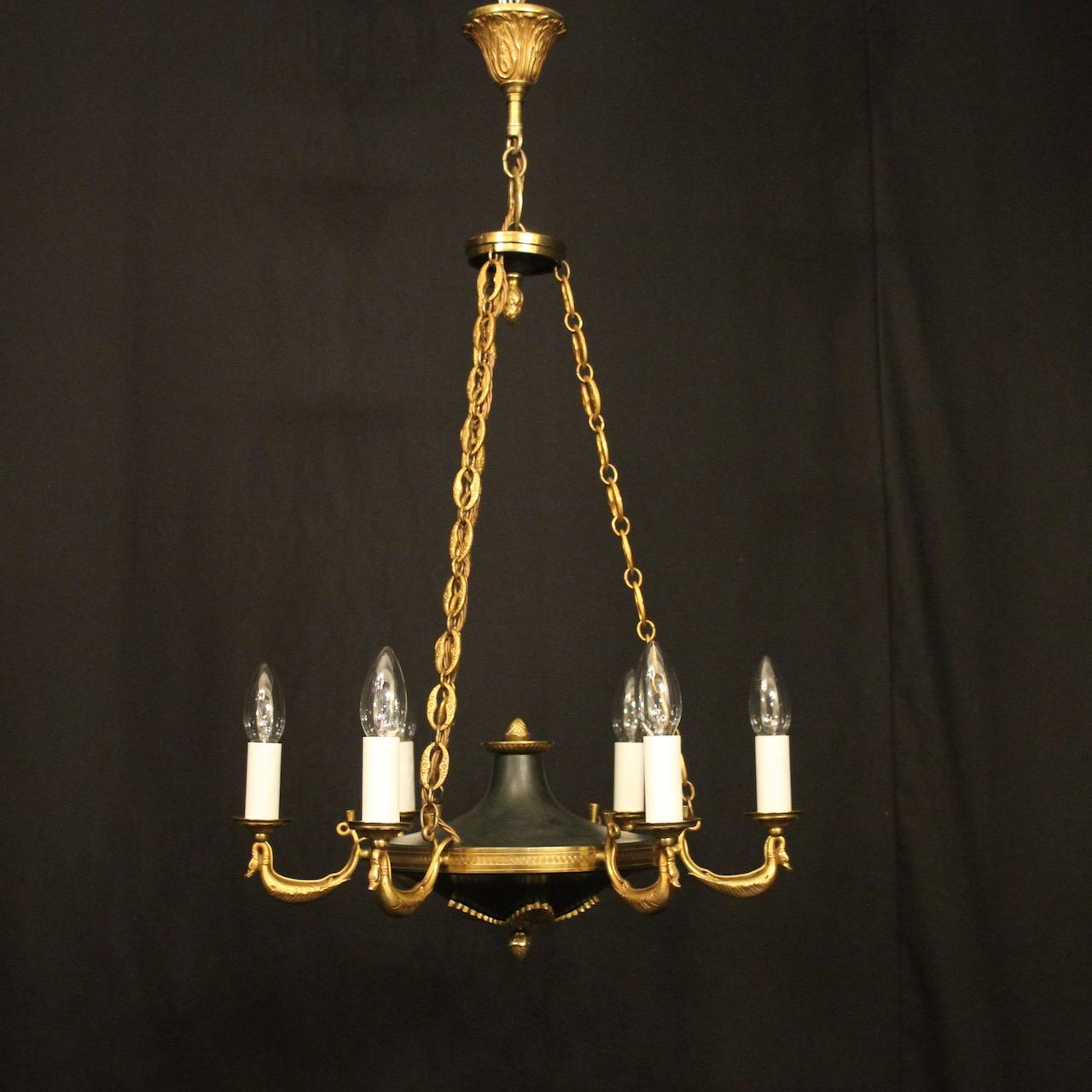 French Gilded Brass Empire 6 Light Chandelier