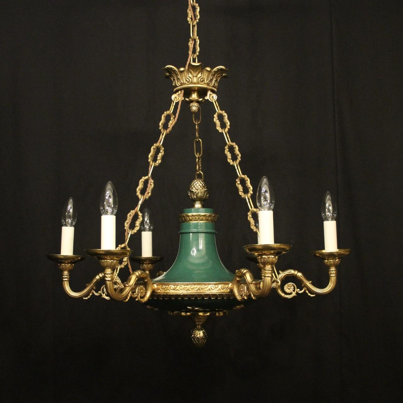 French Gilded Brass Empire 6 Light Chandelier