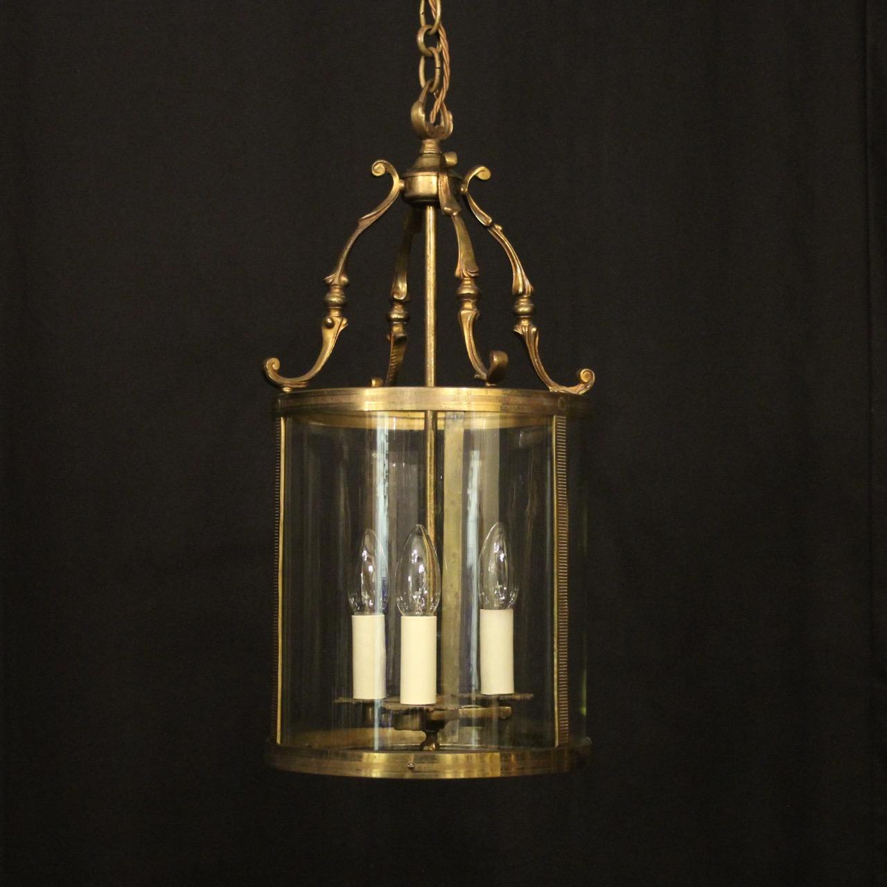 French Gilded Brass Triple Light Antique Lantern
