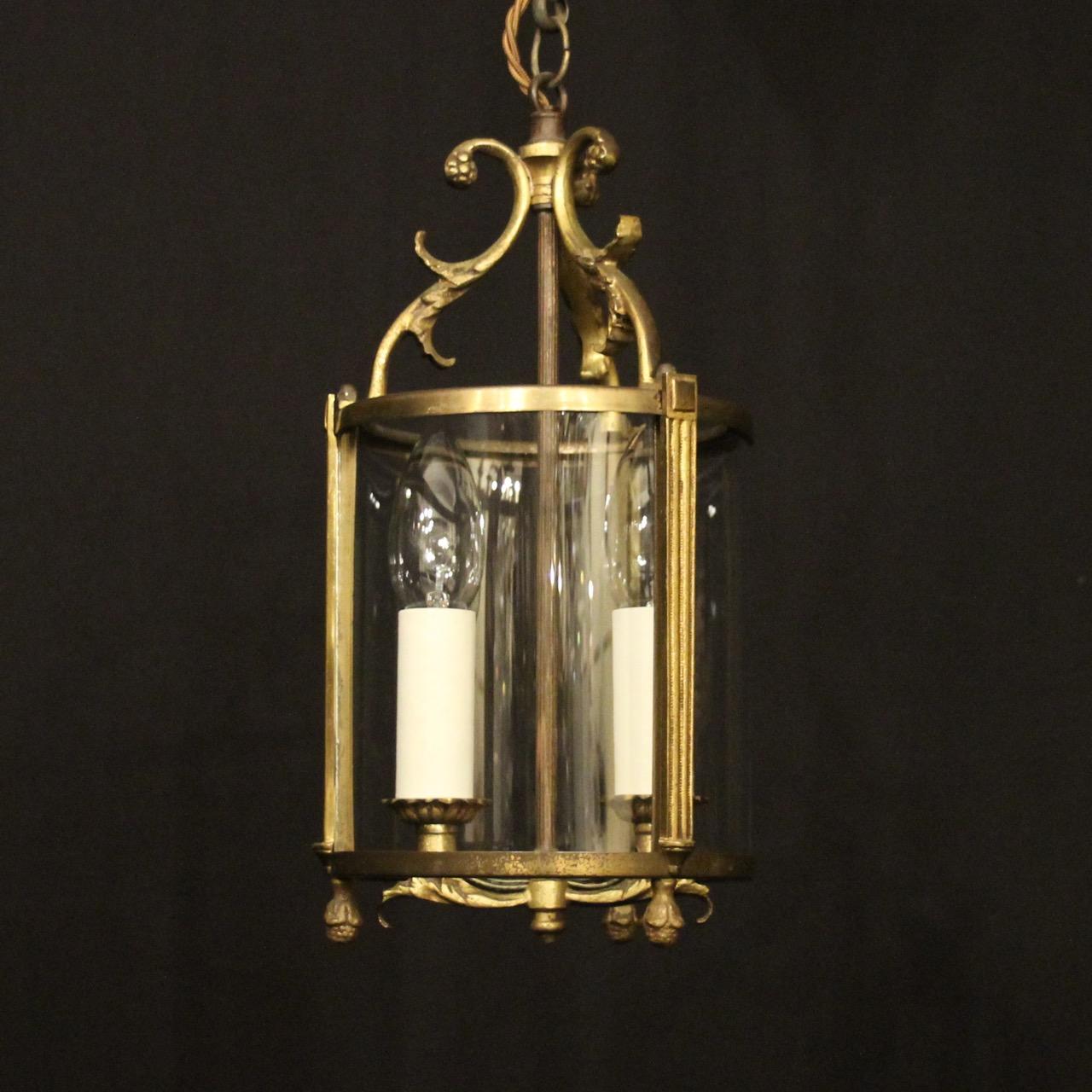 French Gilded Brass Twin Light Antique Lantern